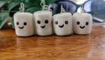 These little guys are handmade, rolled from clay, hand painted, and then carefully dipped to protect them. Each one is unique and even a little imperfect due to its handmade quality, the marshmallow you receive won’t be exactly like the one pictured.